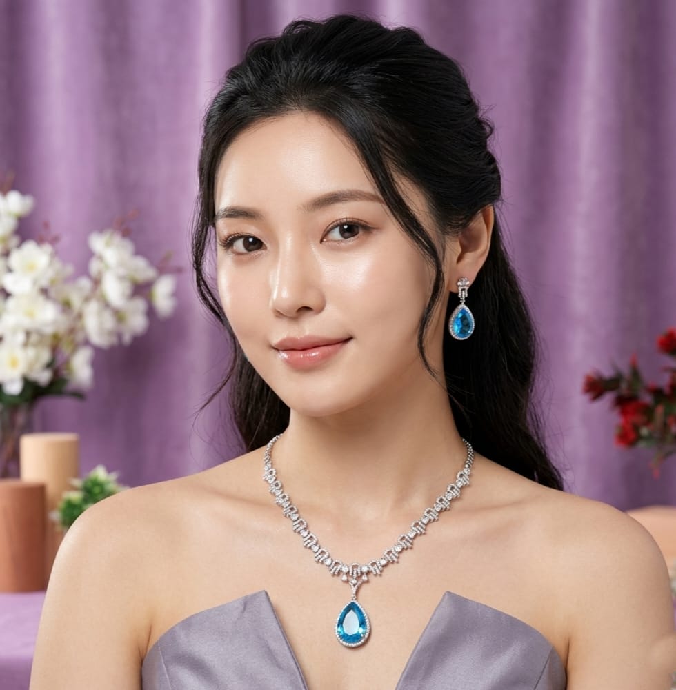 Elegant Turquoise Blue Color Oxidised Necklace Set For Modern Ethnic Look